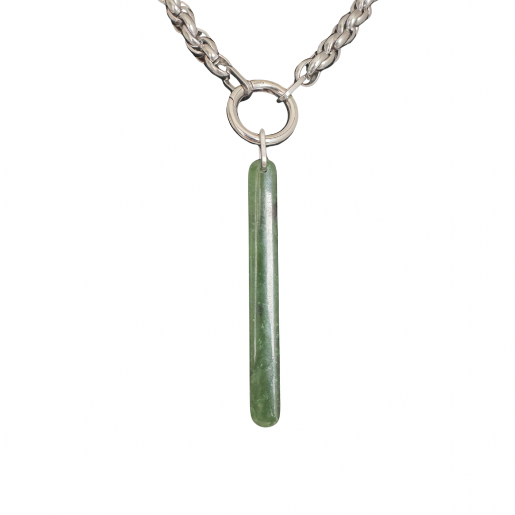 Pounamu is sourced from river beds located on the West Coast of the South Island. The colour and markings of each stone may vary according to the river its sourced from. The item shown is a representation of the design, how ever each item is a unique piece. The colour of stone will range from light green to dark green.